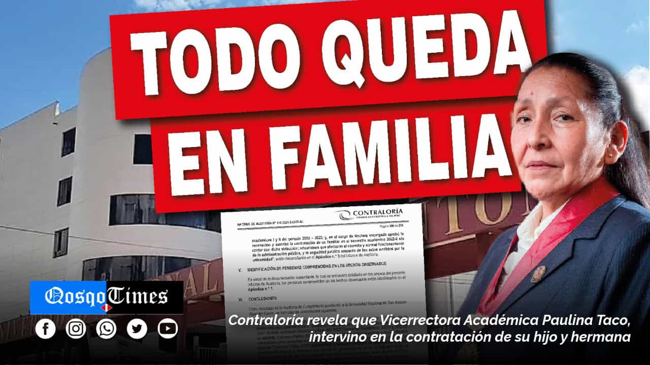 ¿Todo queda en familia? La Contraloría General de la República vuelve a sacudir a la Universidad Nacional de San Antonio Abad del Cusco (UNSAAC). A las reincorporaciones irregulares de docentes se suma ahora un nuevo y grave hallazgo: la contratación y renovación de familiares sin concurso de méritos, con conflictos de interés y posible falsedad en declaraciones juradas. La principal implicada es la Vicerrectora Académica Paulina Taco Llave, hoy candidata a diputada por Alianza para el Progreso (APP).