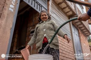 Los vecinos de la APV. Ángeles de María de la margen derecha del distrito de San Jerónimo fueron abastecidos de agua potable. La gestión municipal se compromete a continuar dotar durante estos días el líquido vital en las diferentes APVs del distrito jeronimiano que carecen de agua.