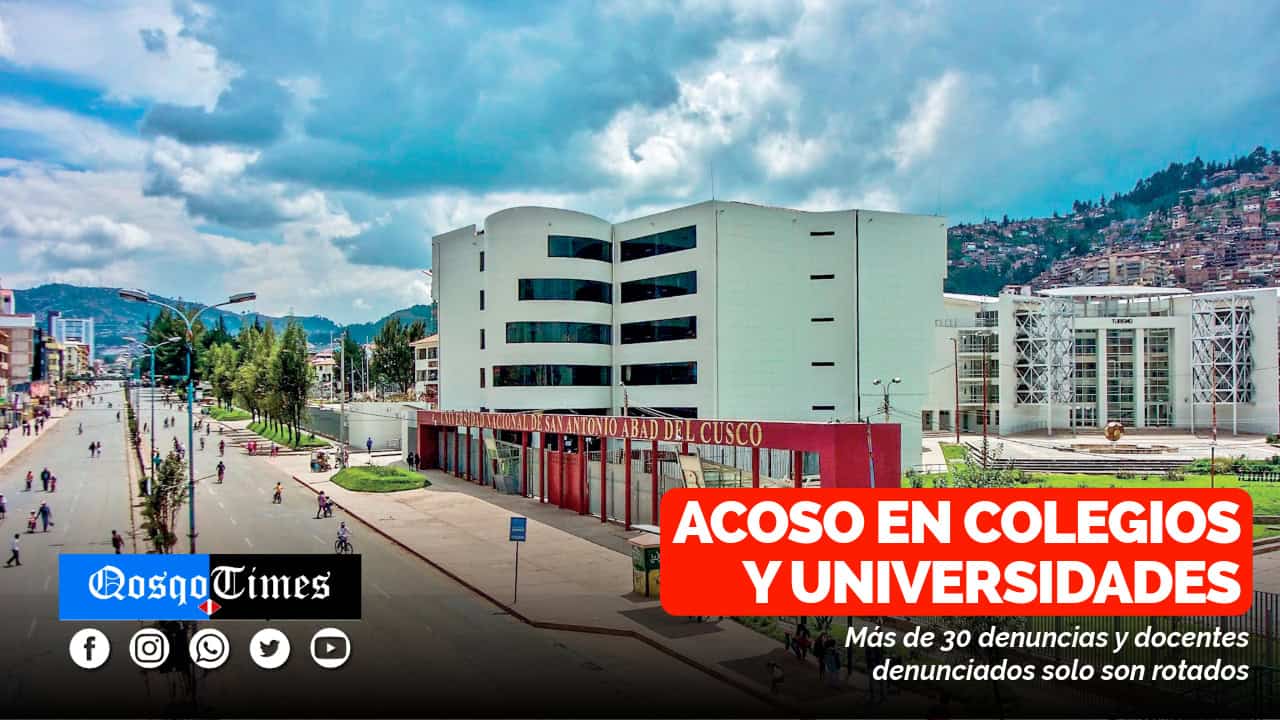 UNIVERSIDADES. Las universidades son otro escenario donde se advierten estos casos. El año pasado en la Universidad Andina de Cusco, se reportaron 30 denuncias por acoso que fueron visibilizadas gracias a una protesta solidaria de los estudiantes ante la inacción de la autoridad. Recién la semana pasada, la rectora Di-Yanira Bravo, confirmó que en esta casa de estudios 15 docentes fueron separados acusados de acoso contra estudiantes. La denuncia presentada por las víctimas hacía referencia a favores sexuales y sentimentales a cambio de calificaciones. “Hemos separado docentes, pero con el debido proceso y seguimos investigando los demás casos”, dijo Bravo. La Universidad Nacional de San Antonio Abad del Cusco también cuenta en su legajo 12 denuncias penales por acoso de las cuales la mitad del subtipo acoso sexual, según información alcanzada por su rector Eleazar Crucinta, quien aseguró que en esta casa de estudios, donde se había desactivado la comisión especial de docentes que tenían la misión de investigar los casos, existe ahora un proyecto de investigación en coordinación con la Universidad Católica de Lima para alcanzar un informe especifico que los acerque a la realidad de esta práctica. “También hemos separado a 9 docentes que eran contratados, con los nombrados debemos esperar la conclusión de la investigación para tomar una decisión sobre su sanción”, dijo la autoridad antoniana. En tanto, las victimas deben seguir en contacto con los agresores, mientras no haya fallo administrativo o penal.